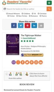 The Tightrope Walker has been awarded 5 stars by Readers’ Favorite and described as an exceptional read.